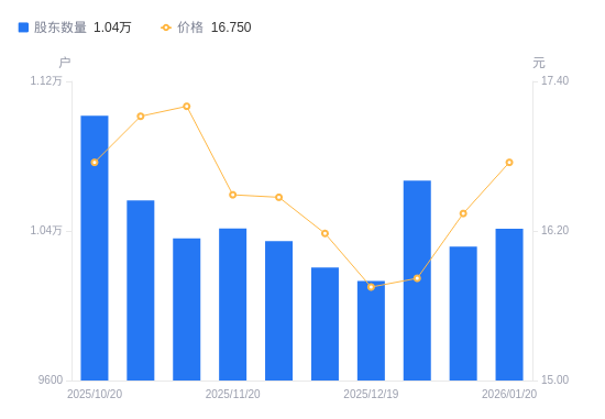 近一年(2025年2月28日至2026年1月20日),东利机械A股股东户数从1。12万户,减低至1。04万户,降幅6。69%,区间股价上涨13。06%。