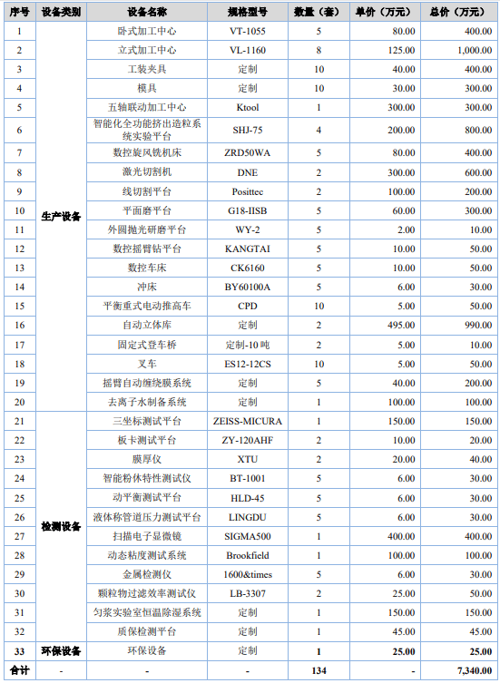 本项目将购买研发尝试设备、环保设备、展现核心设备及办公设备,以进一步加强公司的研发检测能力,为公司手艺立异供给软硬件支撑和保障。项目软硬件设备购买费合计为 1,594。00 万元,购买设备的型号和数量由公司基于现实环境和项目估计需求确定,所选设备为行业内先辈程度,设备价钱次要参同或雷同规格/型号设备的汗青采购价或市场价钱确定。